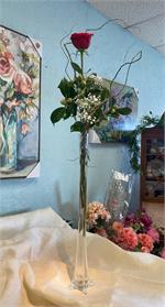Our tallest rose in a vase we call the Eiffel Tower! This is a special for this month only, and only while supplies last!